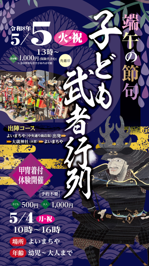 子どもたちが手作りの甲冑を着て練り歩きます